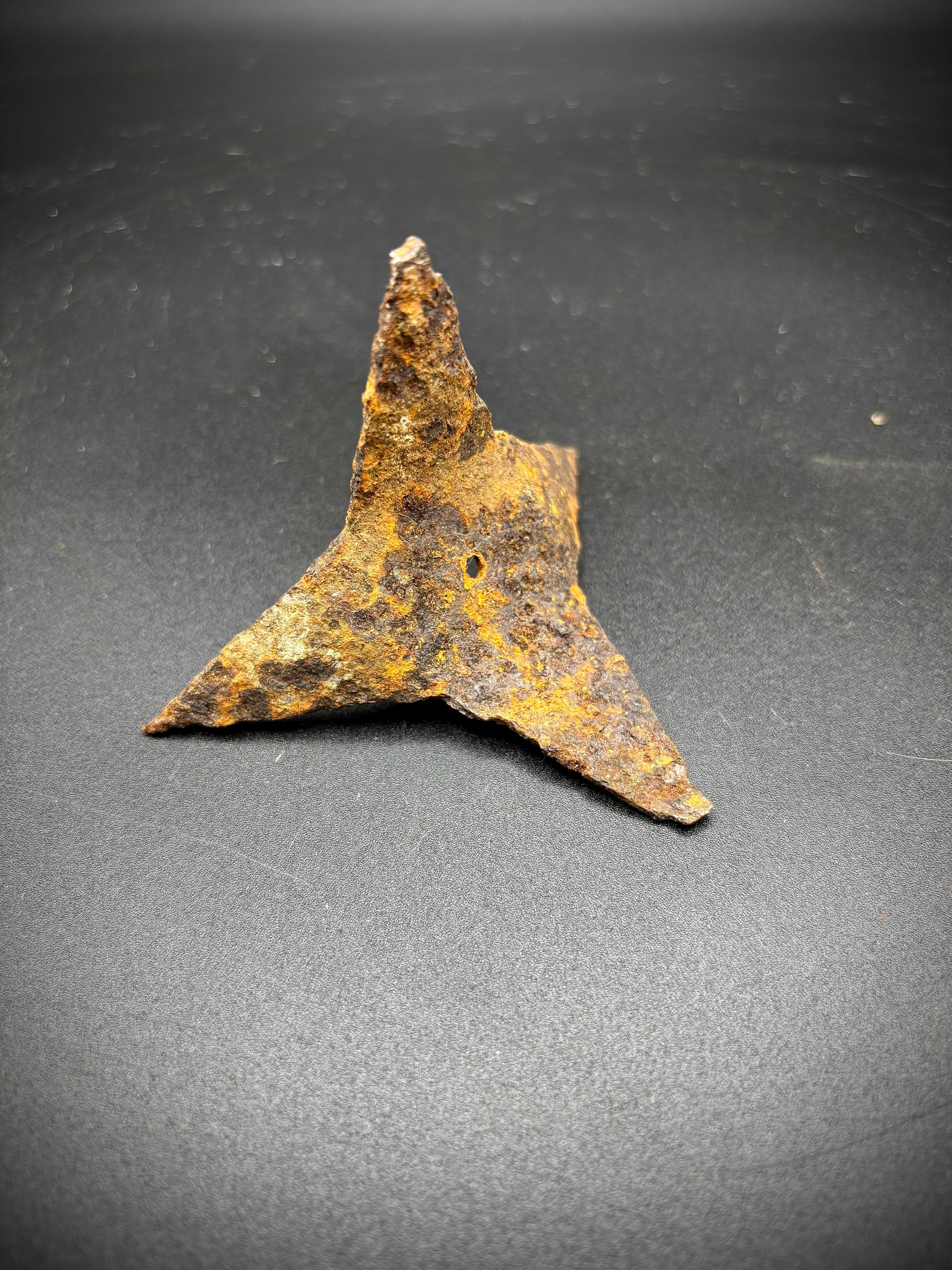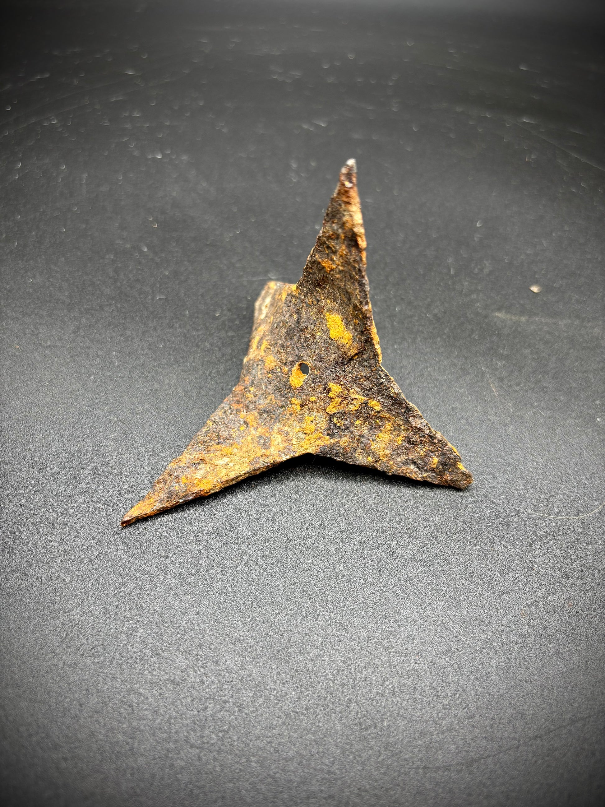WW1 caltrop used for defending key ground. These were a crude and deadly weapon as they would bury in the mud waiting for a soldier or horse to stand on it. This item was found by a local collector on the Somme battlefield.