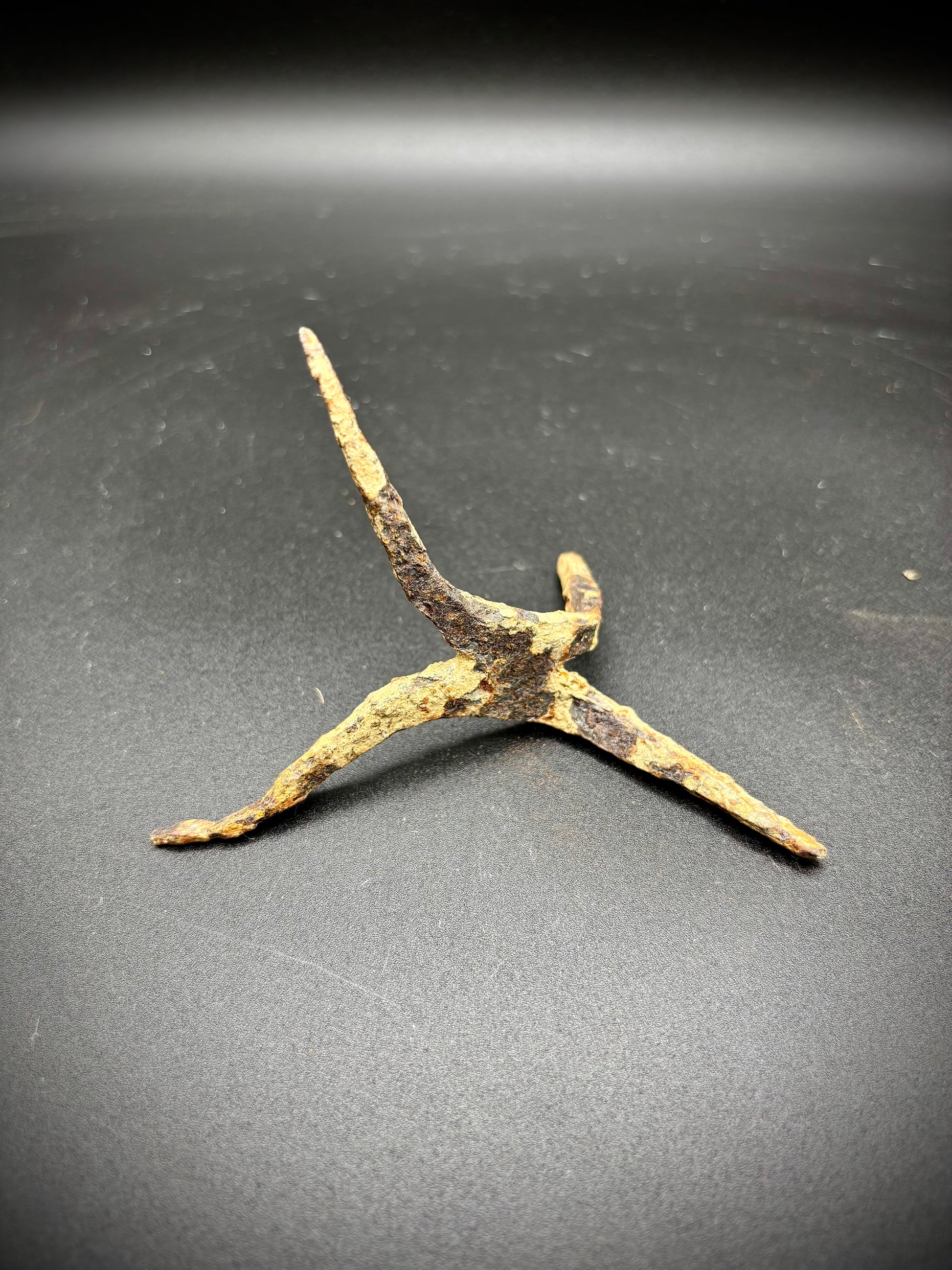 A very crude caltrop used to defend key positions waiting for a poor soldier or horse to stand on it. Found on the Somme