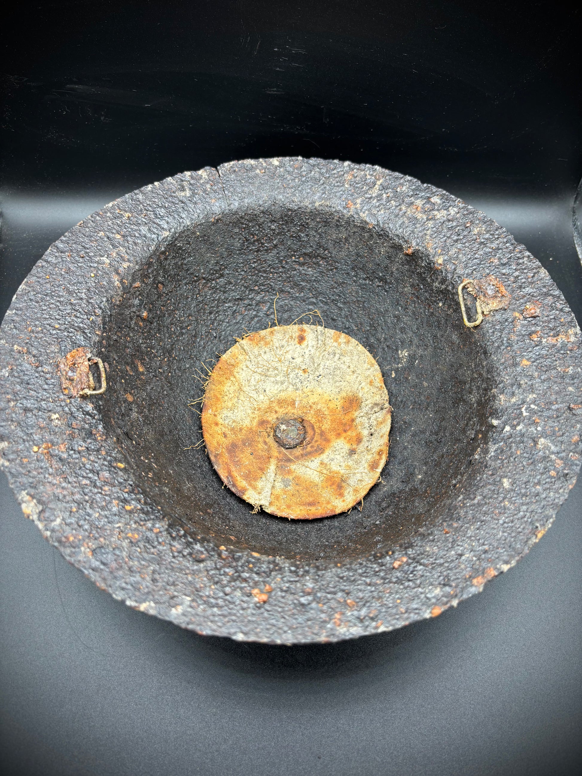 This British helmet was found in the Ancre Valley recently by a local collector. Overall the helmet is in very solid condition with only surface rust and no holes. These helmets typically are in poor condition compared to their German counterparts due to their thin construction.