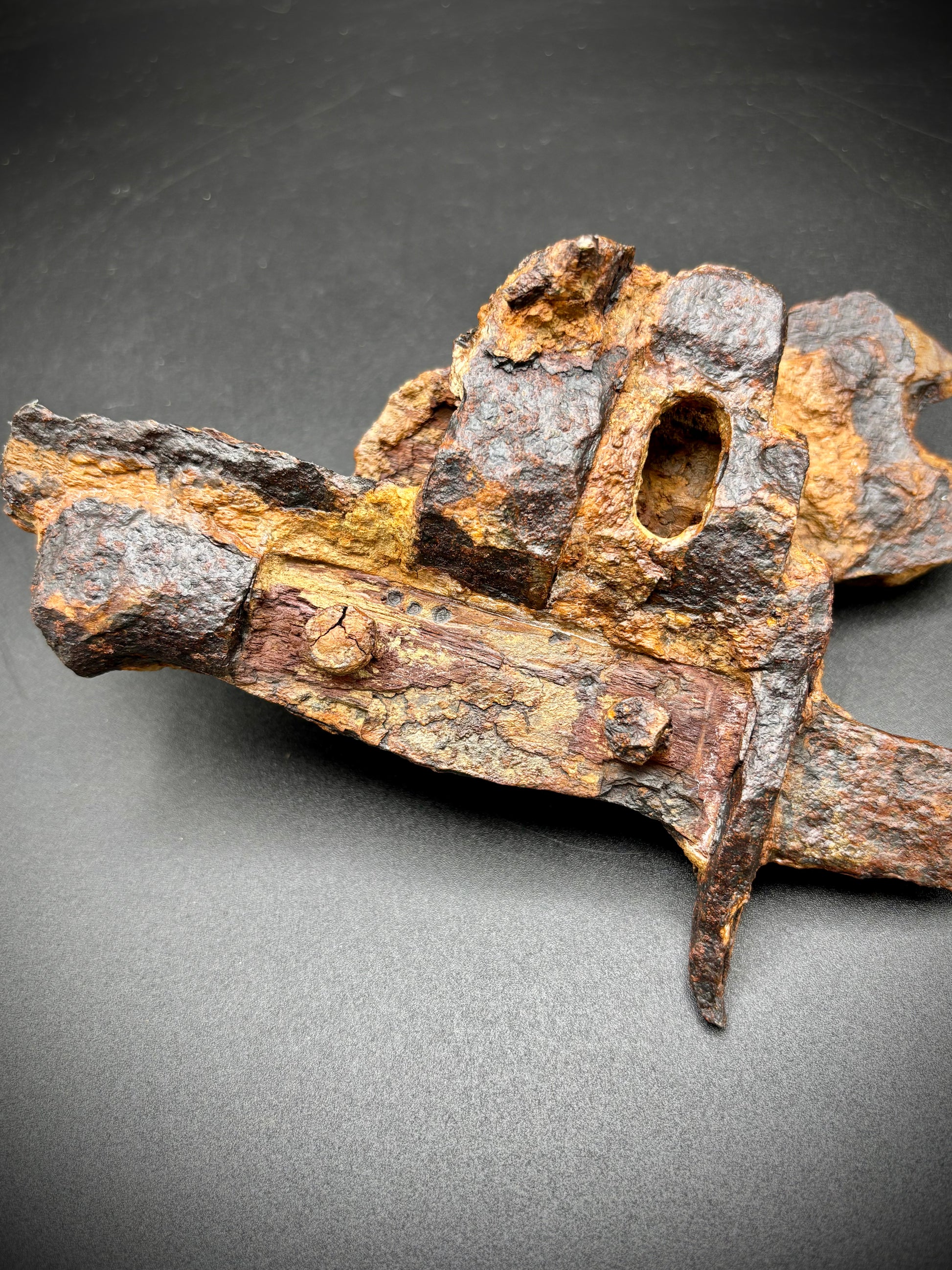 This relic was found very recently at La Boiselle which was the scene of bitter fighting during July 1916. This example is the muzzle of a SMLE with its bayonet attached and also the rare wire cutter attachment still attached as well. This is a very poignant relic as it was probably dropped by an attacking soldier during an advance on the German trenches.